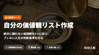 ワークショップ 【無料PDF付】自分の価値観リスト作成|現状維持の焦りにサヨナラ!ブレない決断ができる自分だけのコンパス作成術 「自分が本当に大切にしたいことは何だろう?」数多くの価値観ワードの中から、あなたにとって絶対に譲れないトップ5を選び出し、日々の行動に落とし込むためのワークショップです。 2026.03.23 ワークショップ自己啓発