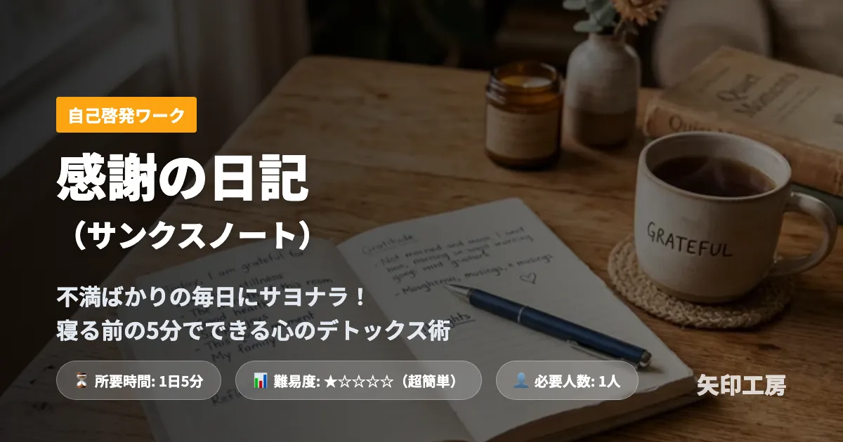 何も特別な道具はいらず、たった一人で、寝る前の5分でできる「感謝の日記」。